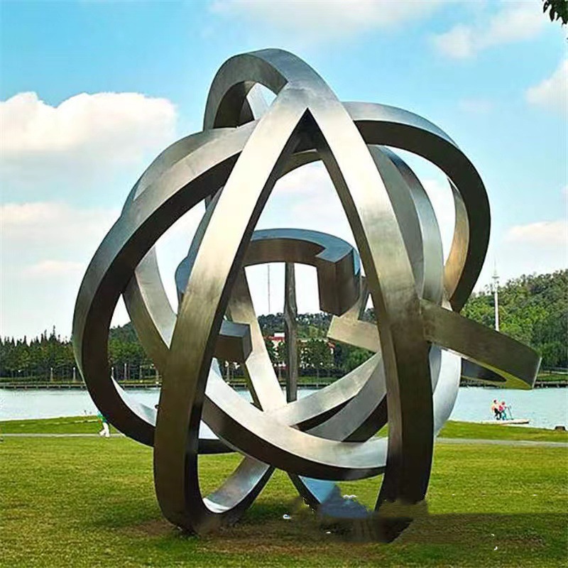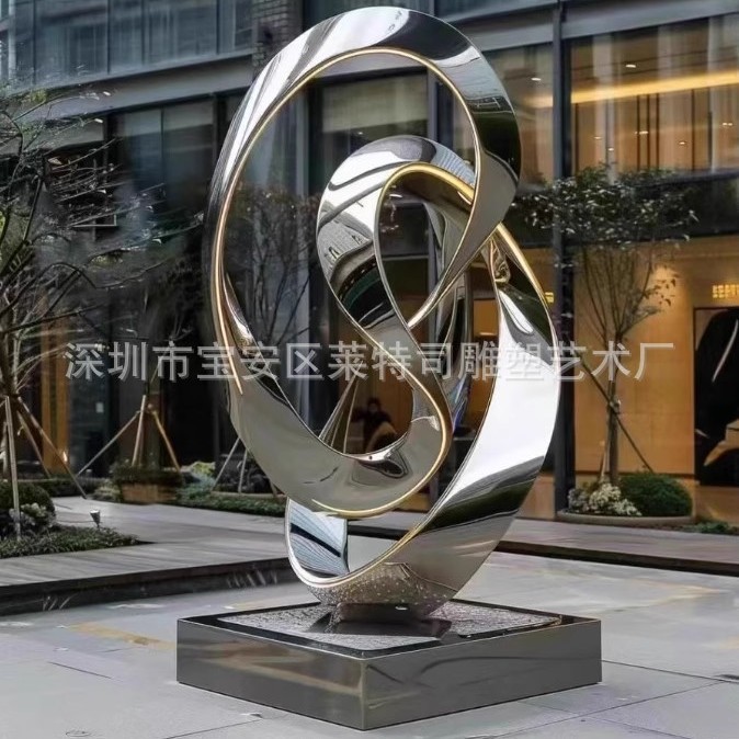 Luar Ruangan Besar Stainless Steel Patung Disesuaikan Produsen Logam Abstrak Cermin Logam Ornamen Patung Lansekap Taman