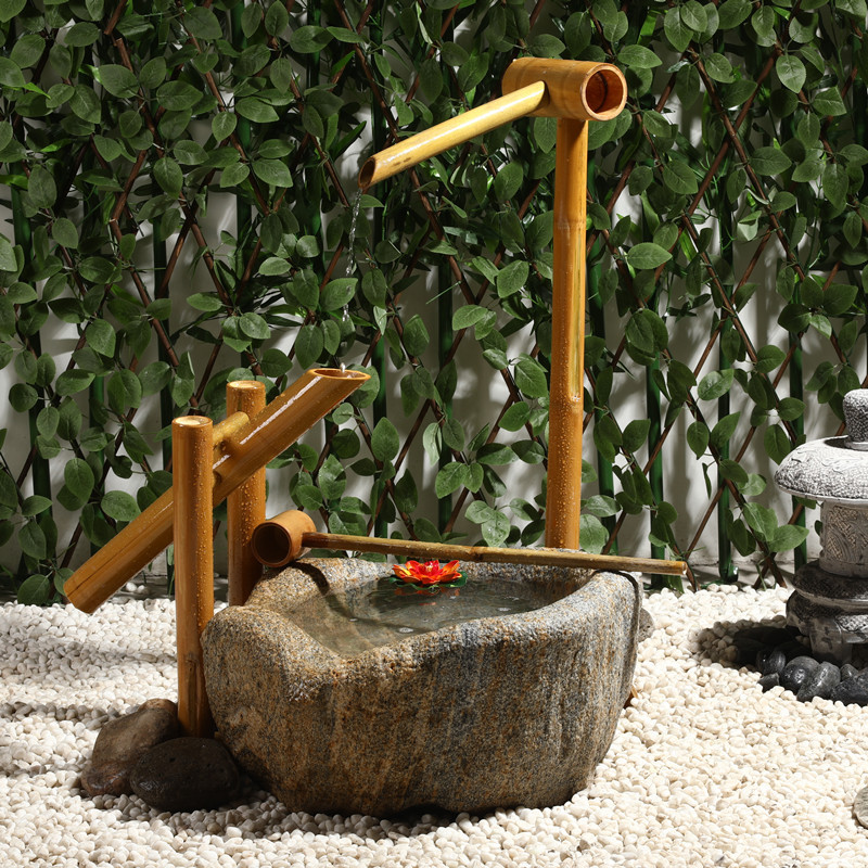 Mangkuk air dekorasi lanskap air taman gaya Jepang melalui mangkuk air pot batu tanam bunga luar ruangan taman tangki tetes bambu baskom berlian imitasi