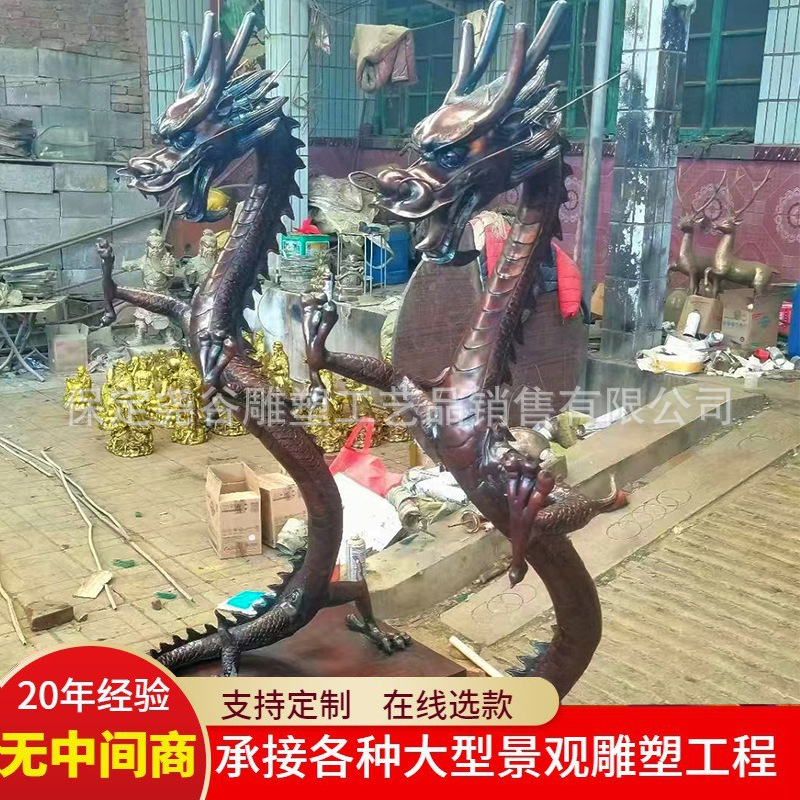 Patung naga tembaga besar luar ruangan dekorasi lanskap naga tembaga cor naga berdiri naga untuk naga delapan cakar pabrik grosir naga api ukiran tembaga