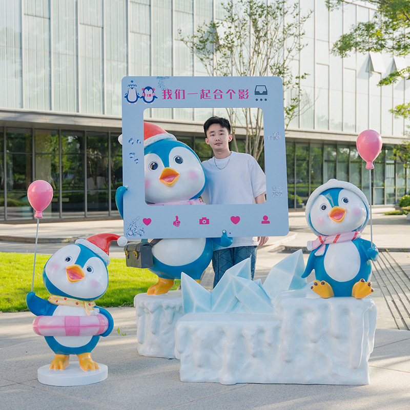 Lansekap Patung Taman Anak Penguin Pusat Perbelanjaan Lanskap Taman Penjualan Departemen Penjualan Ornamen Hewan Luar Ruangan Rumput Muda