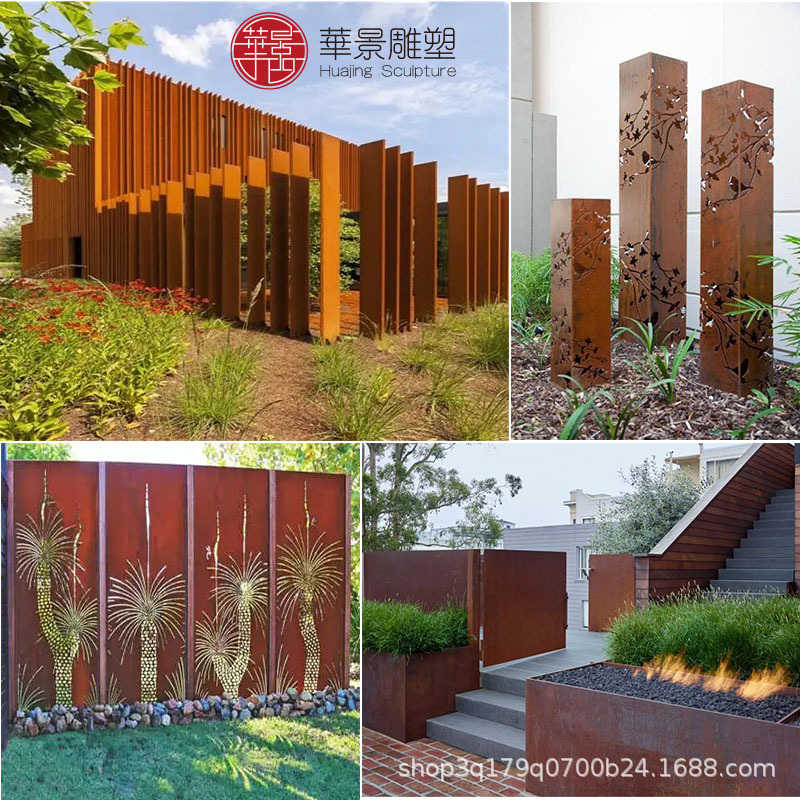 Kotak cahaya bercahaya ukiran berongga pelat baja karat merah perisai tanah pohon taman dekorasi dinding tirai lanskap baja tahan cuaca patung lanskap Dinding