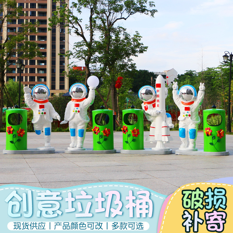 Shopping mall astronot ornamen besar FRP ruang angkasa manusia tempat sampah patung taman lanskap dekorasi taman TK