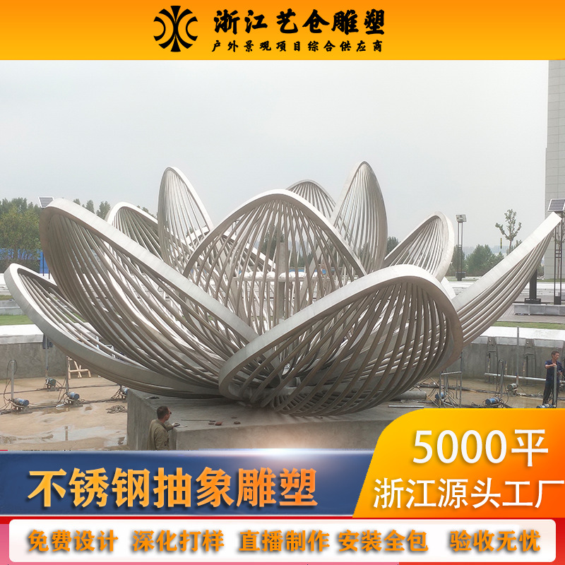 Landmark Besar Outdoor Plaza Stainless Steel Seni Patung Lansekap Lotus Desain dan Instalasi Terpadu