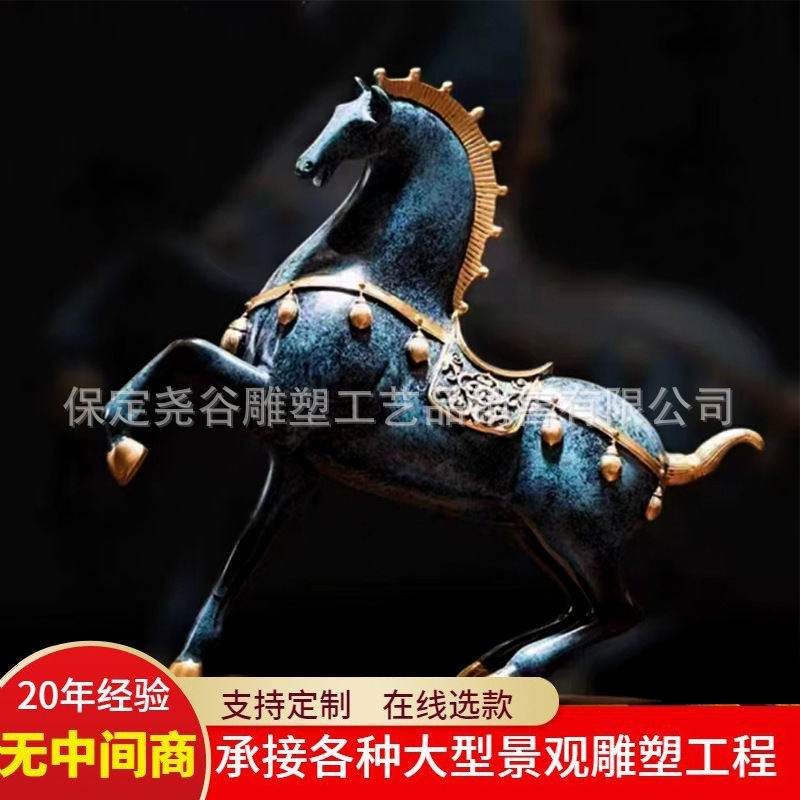 Patung kuda tembaga luar ruangan, landasan kuda lanskap tapak kuda terbang orang tua Fuxi kepala Bawah patung kuda cor tembaga berlari kuda