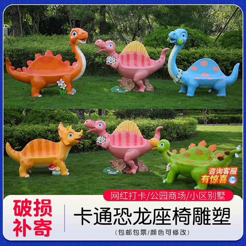 Fiberglass Hewan Kartun Hewan Dinosaur Ornamen Patung Ornamen Jalan Komersial Taman Indah Luar Ruangan