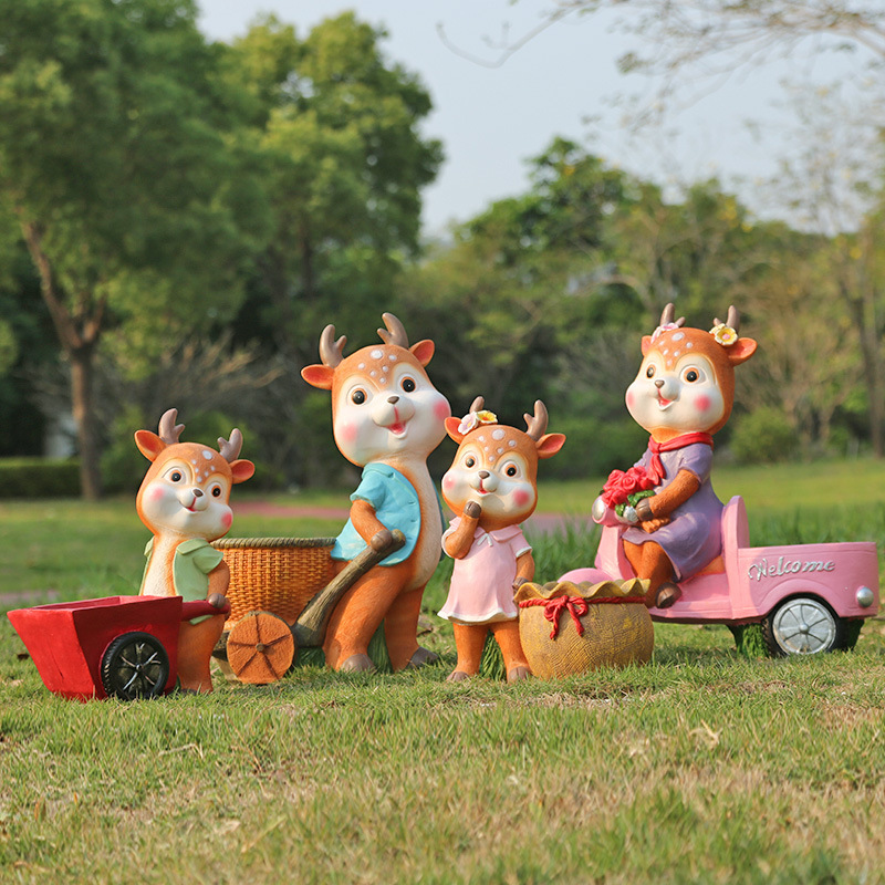 Taman Bunga Plum Bunga Patung Dekorasi Lanskap Kartun Luar Ruangan FRP Kartun Kerajinan Kaca Hewan Sika Rusa