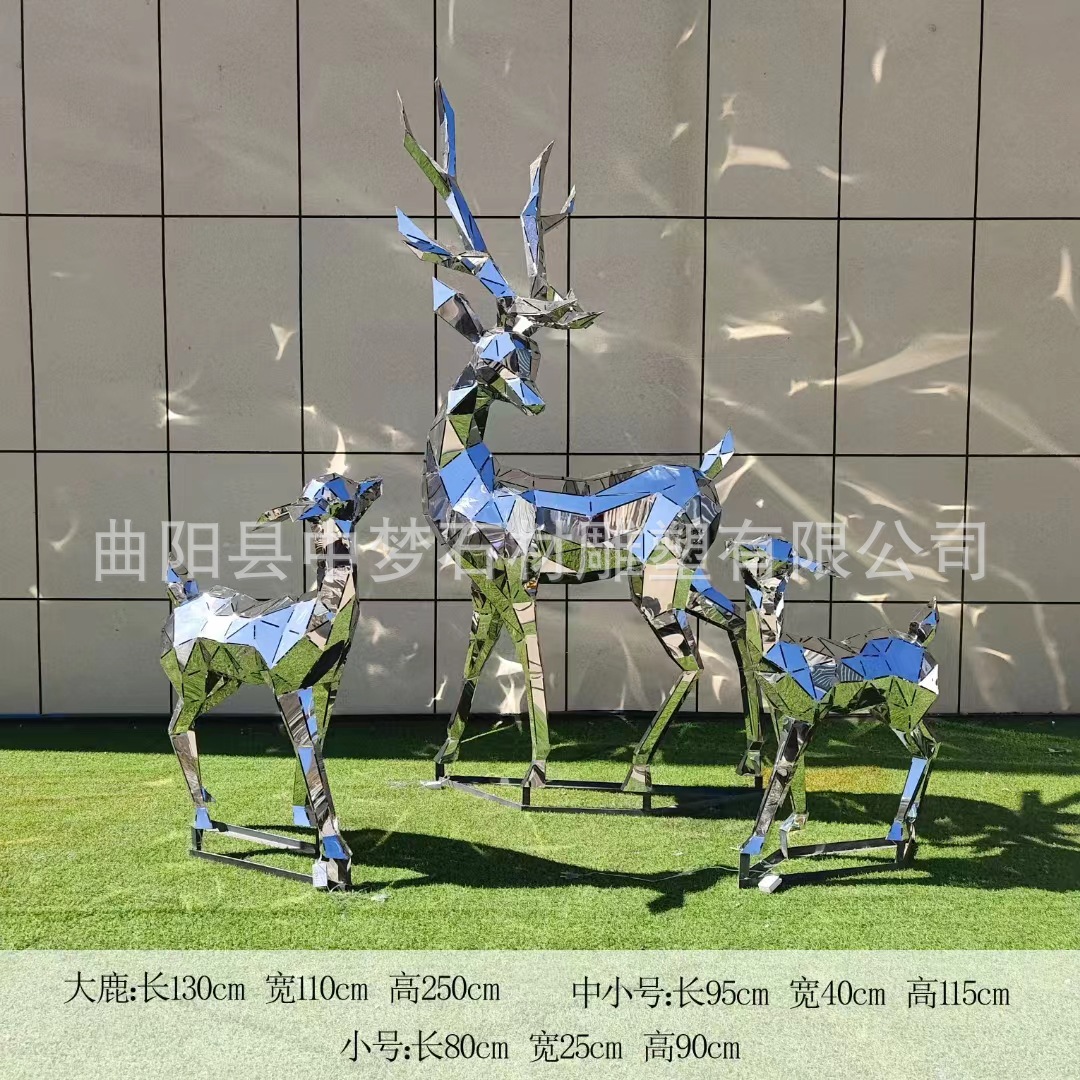 Ornamen hias bentuk rusa, besi tahan karat cermin geometris lantai patung rusa taman lanskap kreatif