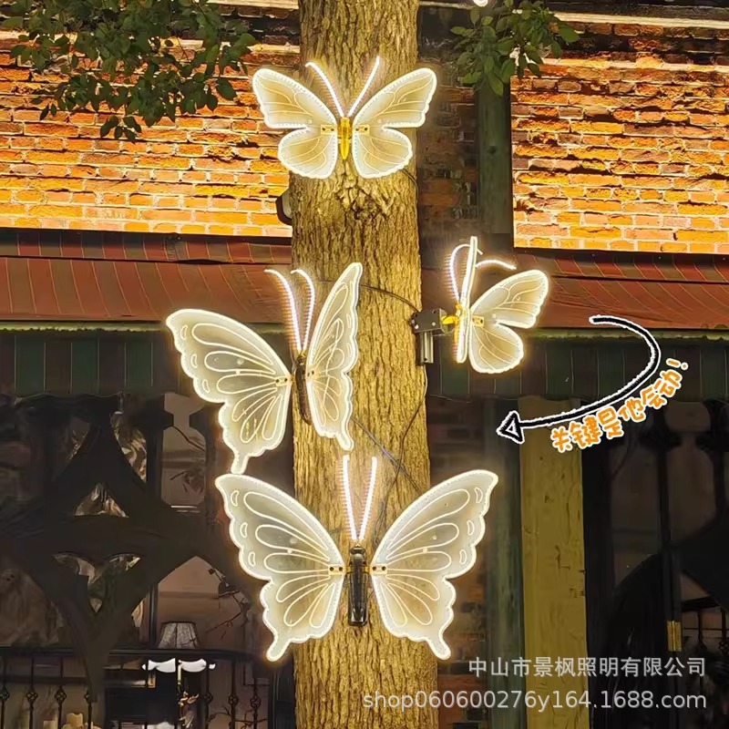 Lampu Kupu-Kupu Dinamis LED Proyek Jalan Pencahayaan Bentuk Lampu Hewan Area Pemandangan Dekorasi Taman Rumput Gantung Pohon