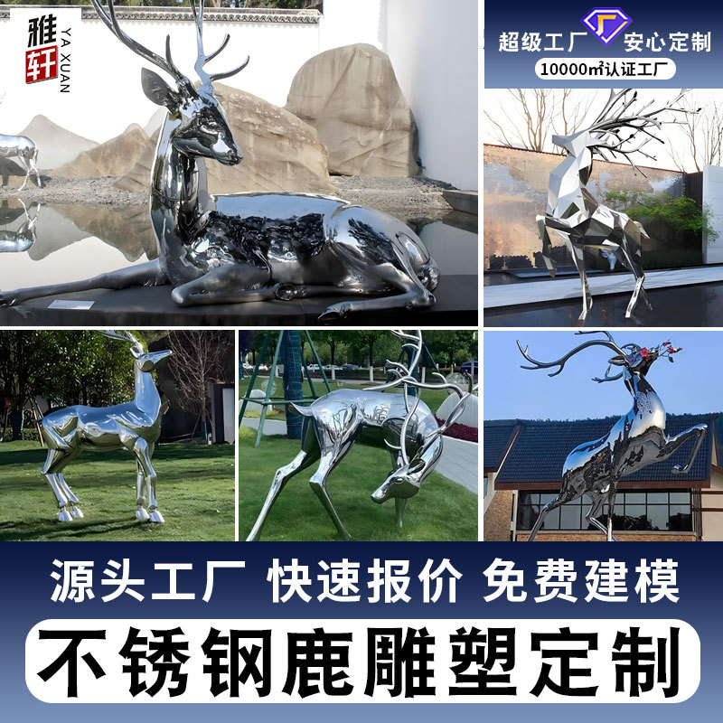 Luar Ruangan Besar Kustom Stainless Steel Rusa Patung Taman Waterscape Plaza