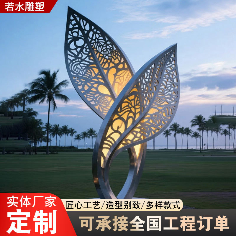 Patung Daun Berongga Stainless Steel Dekorasi Taman Pemandangan Air Dekorasi Halaman Rumput Patung Lanskap Daun Stainless Steel Besar