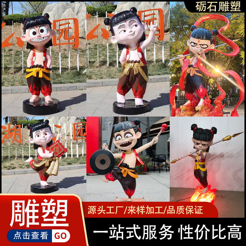 Kartun Nezha FRP Sculpture Dekorasi Taman Luar Ruangan Bioskop Pusat Perbelanjaan Logo Kartu Dekorasi FRP