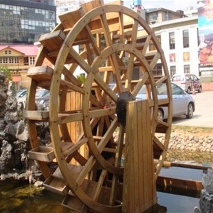 Truk air kayu anti-korosi luar ruangan kayu dikarbonisasi roda feng shui lanskap kayu solid truk air listrik besar penjualan langsung pabrik
