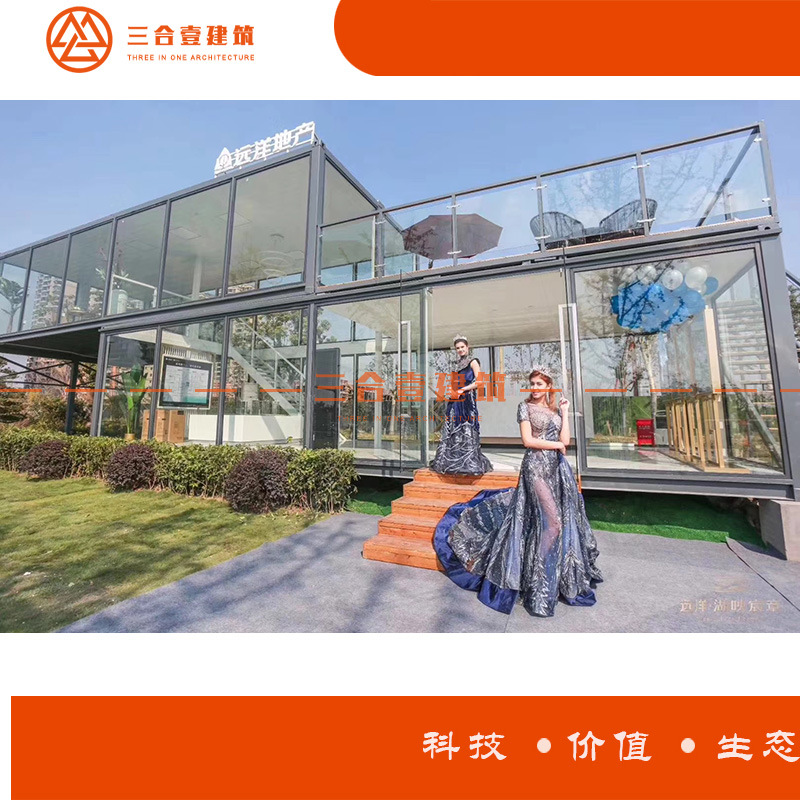Desain transformasi kontainer, produksi dan instalasi model rumah departemen penjualan terintegrasi rumah penjualan langsung nasional