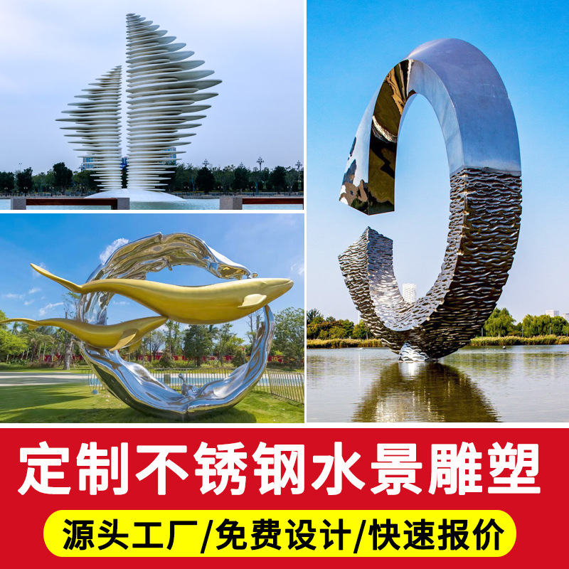 Lukisan pemandangan taman patung baja tahan karat besar bingkai galeri pemandangan air berongga benteng semangat kampus lanskap persegi