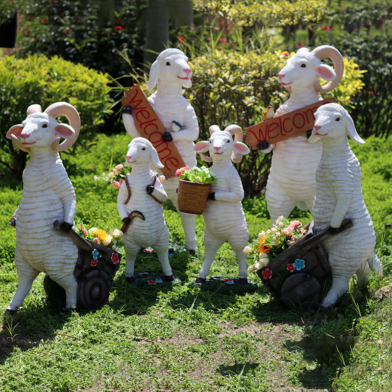 Ornamen domba simulasi dekorasi taman, pot bunga domba kartun luar ruangan, dekorasi taman lanskap rumput villa