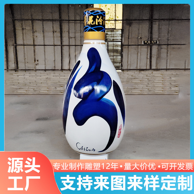 Kustom simulasi patung fiberglass Wuliangye botol anggur patung Maotai jiansun mimpi biru asap dekorasi hotel