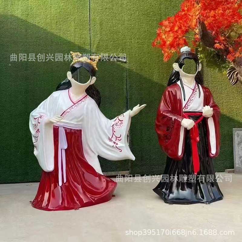 Toko patung wajah kosong serat kaca kustom pabrik toko toko pelubang merah foto kostum kuno Hanfu drainase dekorasi wajah terbuka