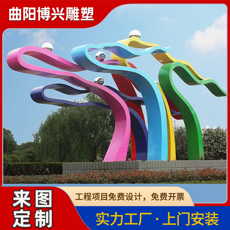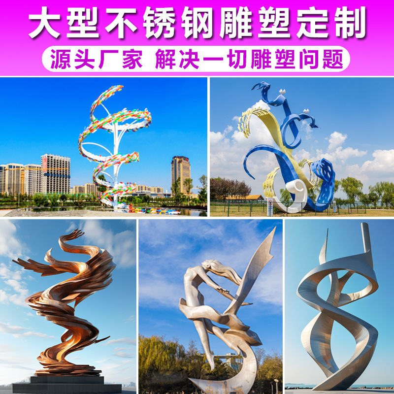Galeri patung lanskap baja tahan karat besar taman luar ruangan kampus logam cermin struktur benteng spiritual