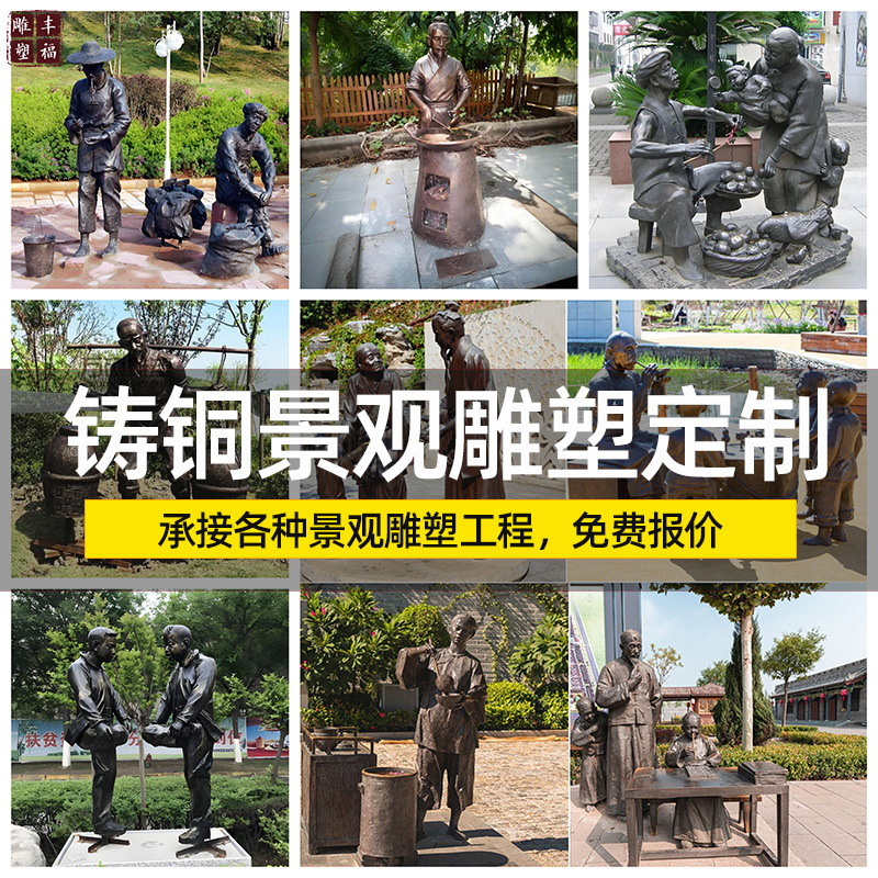 Patung tokoh tembaga cor luar ruangan lanskap tembaga ukiran pejalan kaki tema rakyat budaya tembaga ornamen patung sketsa