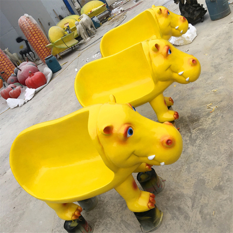 Patung kursi hewan serat kaca di stok, kursi santai kartun taman persegi ornamen patung kecantikan kreatif