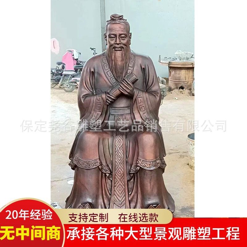 Patung perunggu cor Laozi, patung Saint tembaga persegi kampus taman Dekorasi lantai FRP figur tembaga imitasi duduk patung