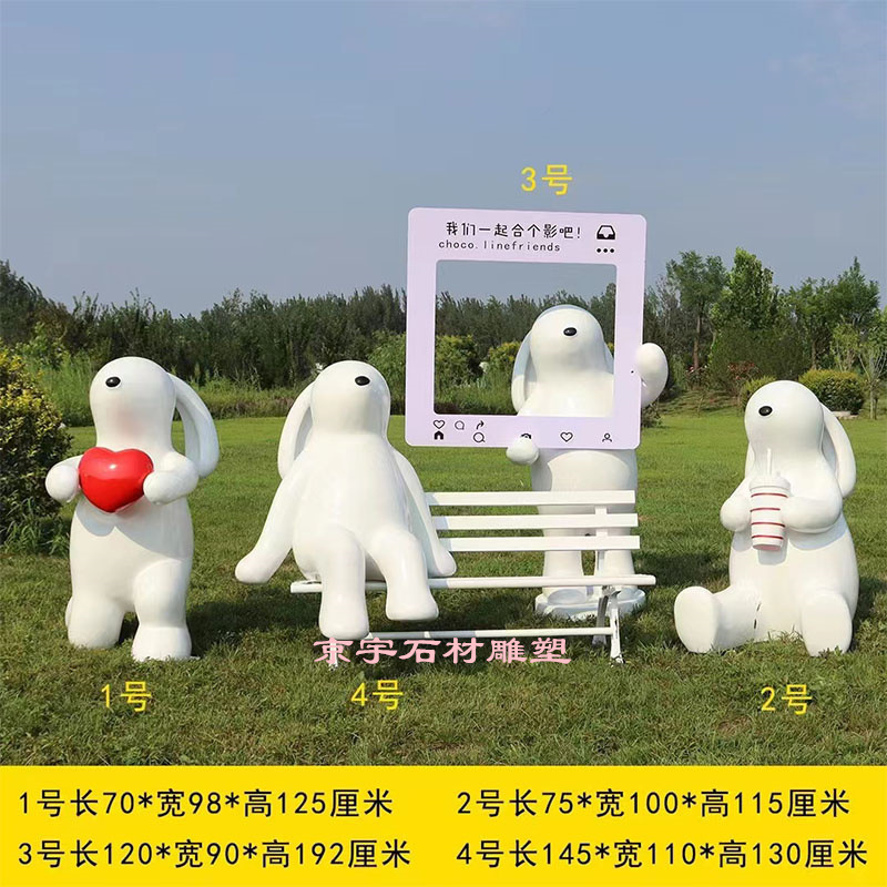 Jam jaring merah luar ruangan dekorasi kursi kelinci putih kartun abstrak patung kelinci taman halaman Dekorasi lantai sketsa