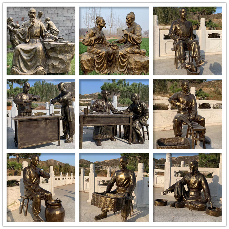 Fiberglass patung tokoh tembaga imitasi gaya rakyat, ornamen tema budaya memancing patung tembaga cor Jalan Pejalan Kaki