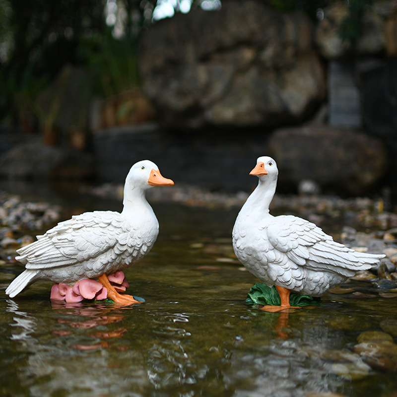 Sketsa dekorasi lanskap kolam rumput taman Villa Dekorasi patung model bebek luar ruangan