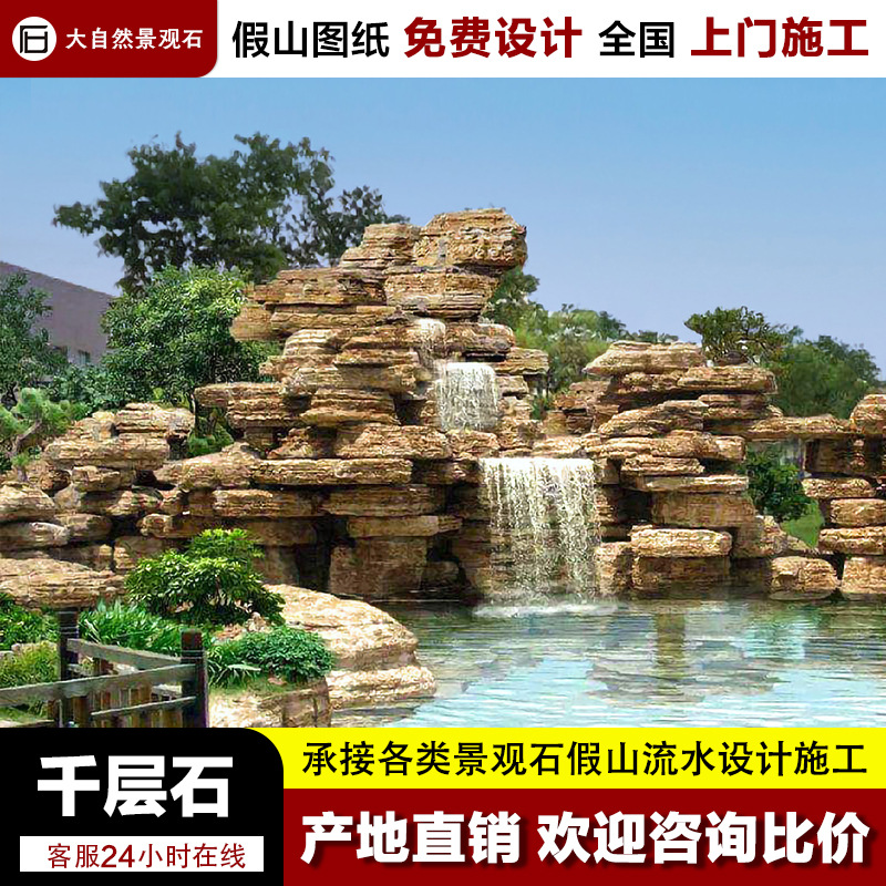 Kuning polesan batu besar teknik paving batu kuning pemandangan taman tangki ikan lanskap hujan bunga batu produsen
