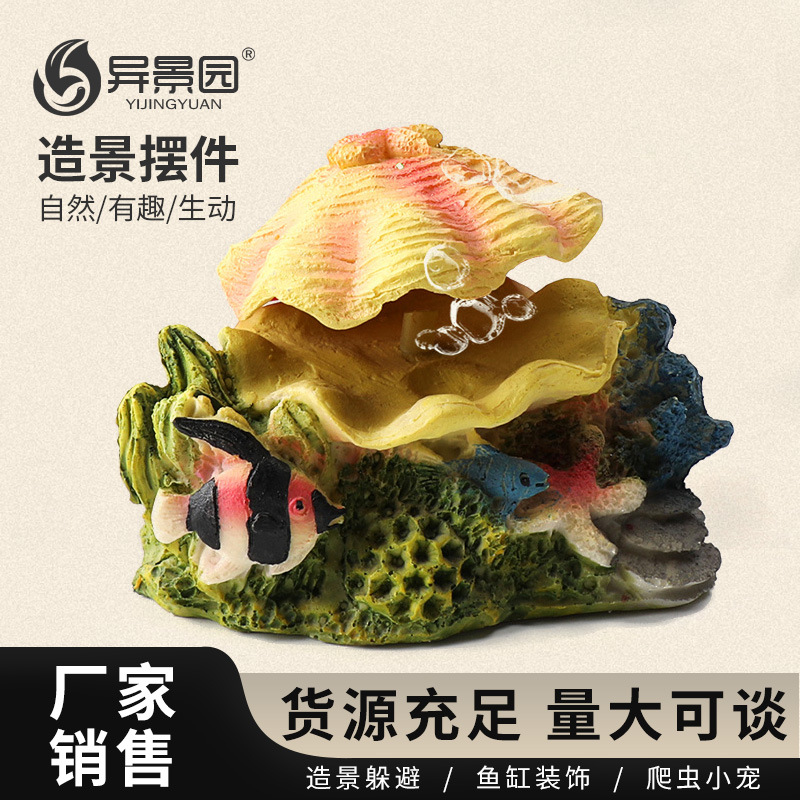 Dekorasi Tangki Ikan Ornamen Kecil Aksesoris Pompa Oksigen Shell Lansekap Simulasi Batu Palsu Kawah Resin Magma