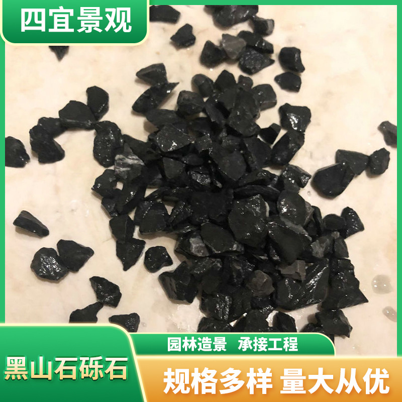 Pabrik grosir taman dekorasi penghijauan hitam pemoles umum sorot hujan bunga batu hitam kerikil hitam