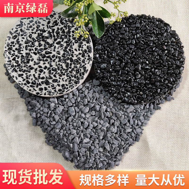 Terrazzo batu hitam produsen hitam mengasah kerikil bulat mekanisme batu hancur paving taman perekat batu dicuci batu