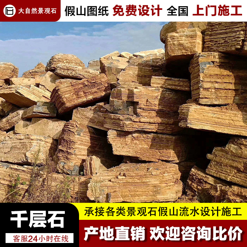 Grosir material batu berlapis ribuan lapis, batu lanskap alami, batu Lingbi alami untuk kolam ikan halaman, desain dan konstruksi batuan.