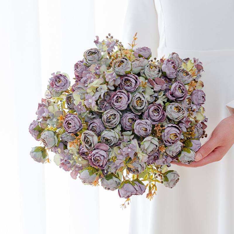Buket bunga buatan berlian vintage tepi bakar, bunga plastik buatan Dekorasi pot