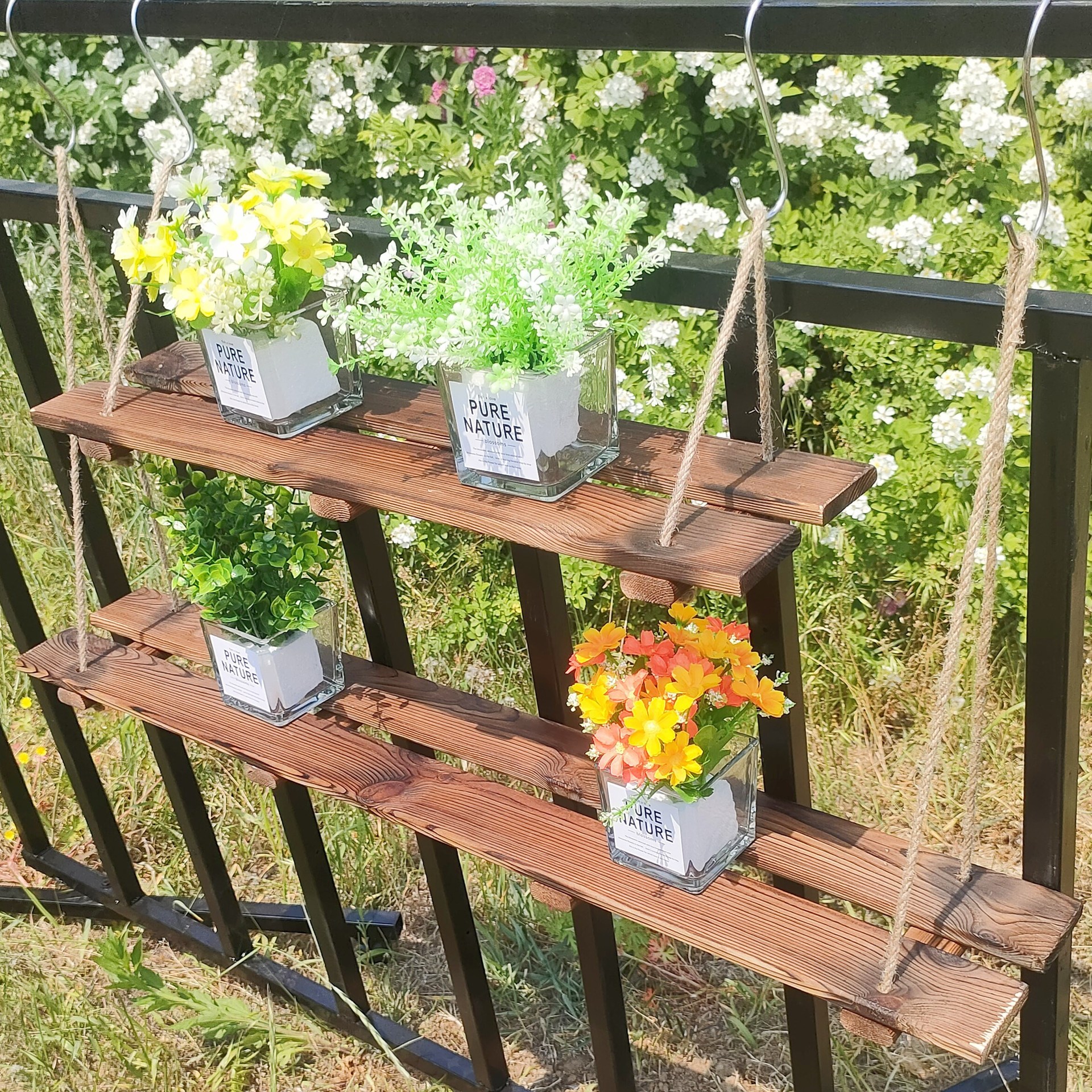 Rak Bunga Pagar Suspensi Rak Bunga Pot Bunga Anti Korosi Kayu Solid