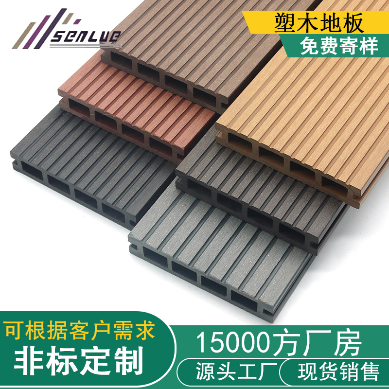 Pabrik plastik kayu luar ruangan PE lubang persegi kayu plastik lantai papan pagar teknik taman halaman teras lantai