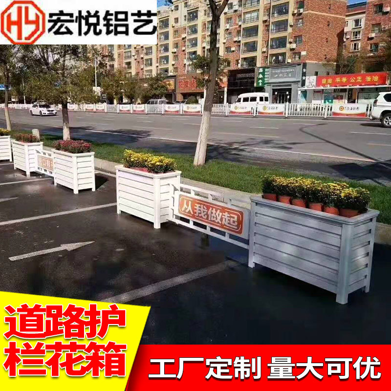Kotak bunga logam campuran aluminium seperti kayu pagar jalan luar ruangan pagar bunga pabrik bunga ponsel melalui kotak penanaman hijau
