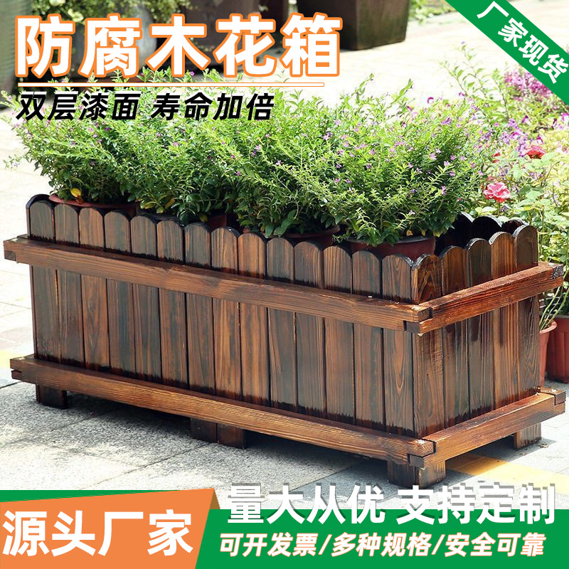 Produsen kotak bunga persegi pot tanaman bunga kombinasi kayu padat lanskap kota partisi kotak bunga kayu antikorosi balkon luar ruangan