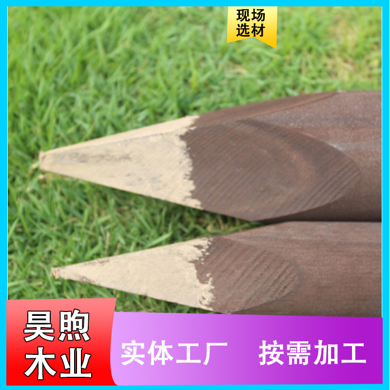 Kayu bulat luar ruangan kayu berkebun warna-warni pagar tumpukan kayu anti-korosi pagar kayu karbon tiang fir Taman