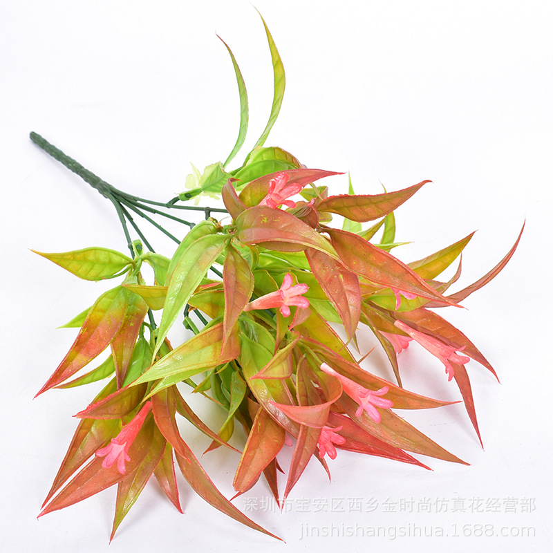 Dekorasi bunga buatan plastik kecil, simulasi bunga terompet merah 5 kepala, dekorasi taman, pengaturan bunga pagar, bunga kecil