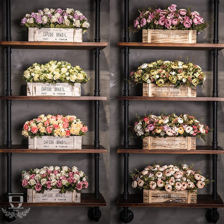 Penjualan laris Amazon pagar kayu bunga buatan setelan dekorasi rumah ruang tamu dekorasi tanaman buatan pot tanaman hijau palsu