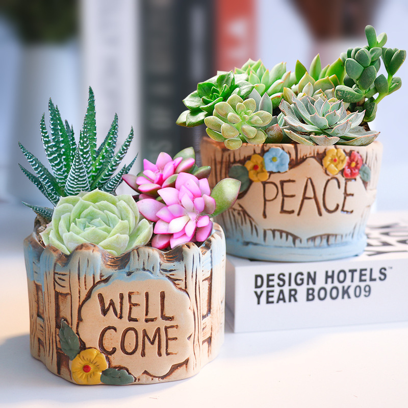 Korea kreatif bernapas sukulen pot bunga keramik stoneware polos membakar Lucu pagar gaya pastoral thumb basin kombinasi setelan