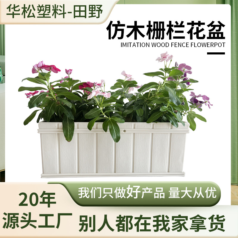 Kotak tanam plastik untuk lantai balkon, pot bunga persegi panjang, rak bunga sill jendela pagar rotan, pot bunga gantung