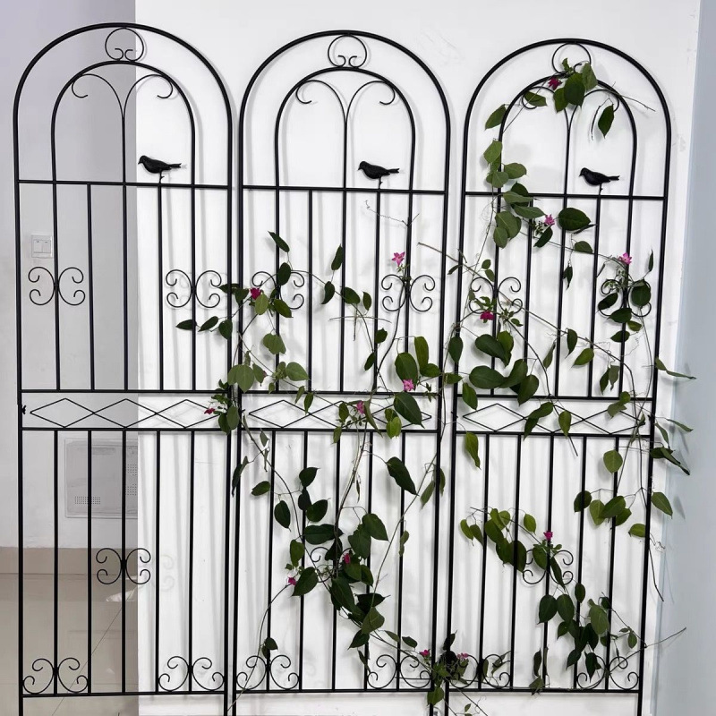 Kawat gaya Eropa Lotus tanaman mawar memanjat bingkai berkebun pagar besi luar ruangan halaman grid besi dekoratif bunga berdiri