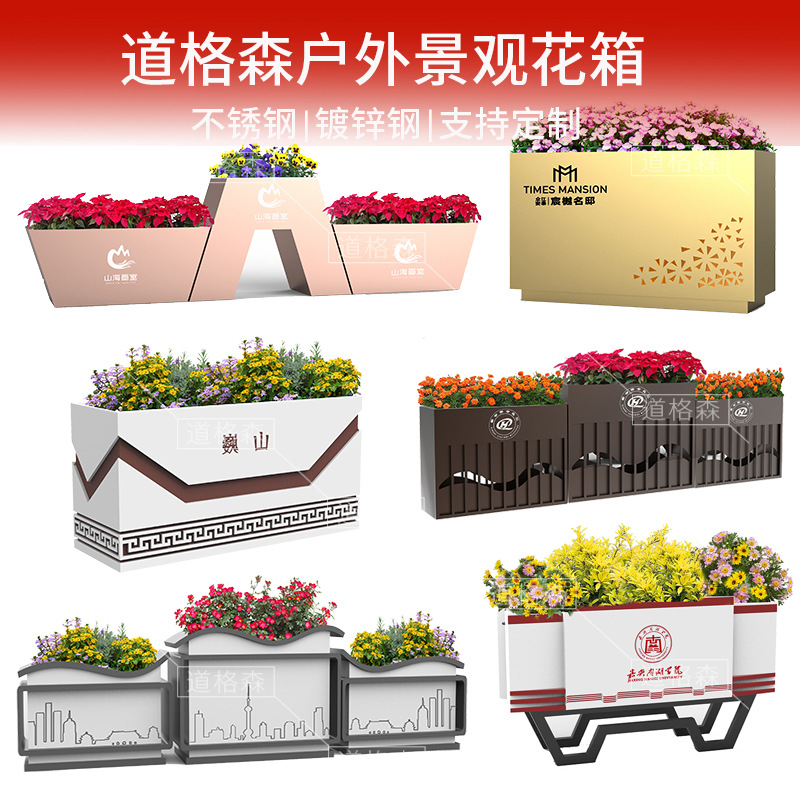 Kotak bunga komersial stainless steel untuk luar ruangan, kotak tanam, dekorasi eksterior toko, kombinasi seni besi logam, kotak bunga, partisi pagar pembatas