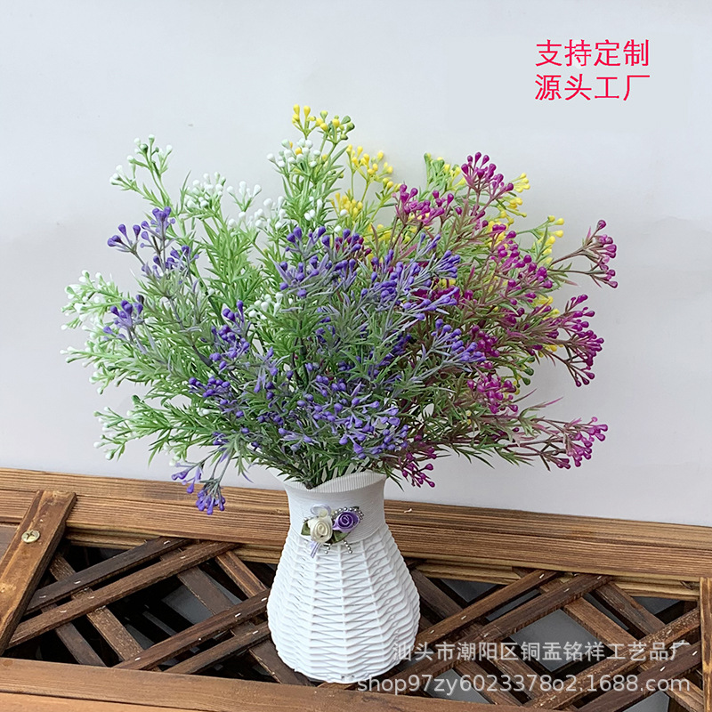 Aksesori dinding tanaman bunga buatan proyek rumput mutiara tata letak pemandangan langit berbintang menangani rangkaian bunga pagar pot