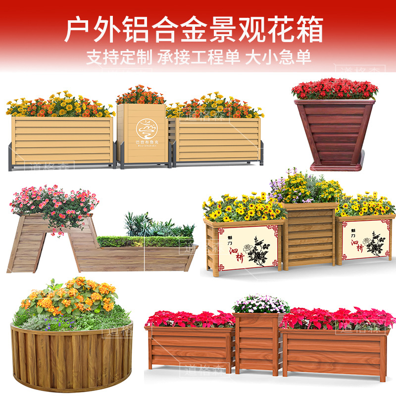 Kotak bunga logam tepian baja tahan karat pilihan ukuran sumber warna kotak bunga logam campuran aluminium pengangkat lanskap luar ruangan