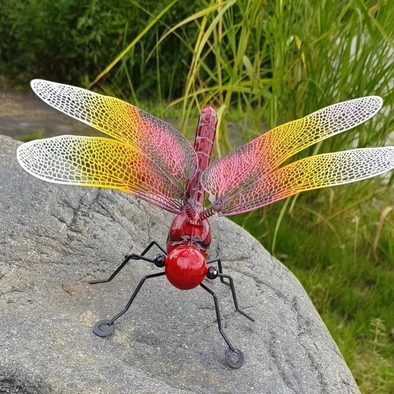 Ornamen patung pagar dekorasi rumah, kerajinan logam panas lintas batas, capung tiga dimensi luar ruangan