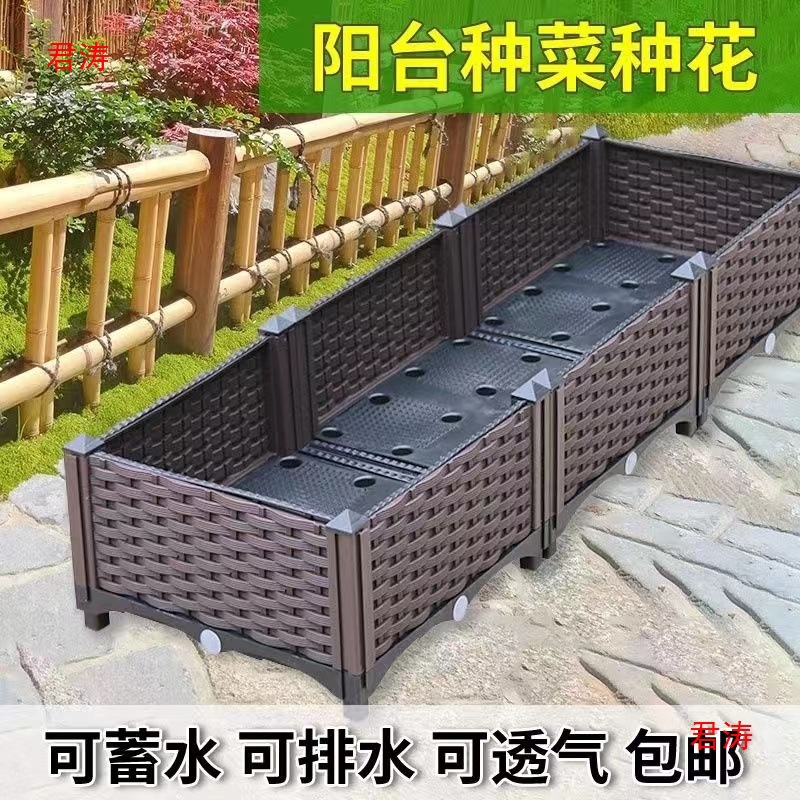 Pot Bunga Model Pagar Pot Plastik Pot Sayuran Berpagar Panjang Persegi Panjang Tumbuhkan Bunga Balkon Kotak Khusus Rumah Tangga