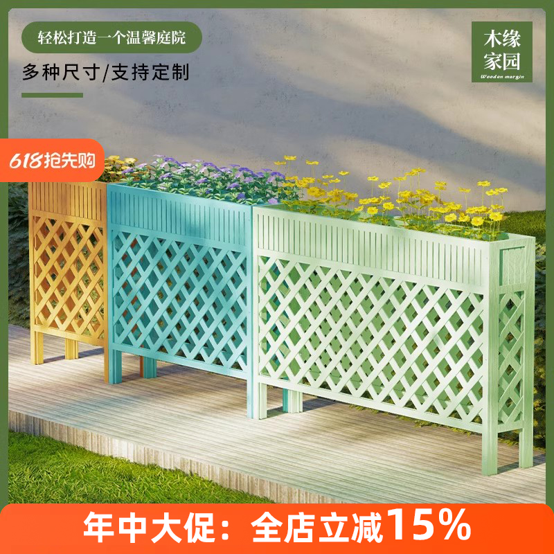 Kotak Bunga Luar Ruangan Kotak Tanam Bunga Rak Kayu Anti Korosi Pagar Restoran Pagar Partisi Dinding Taman Rak Pot Bunga Halaman